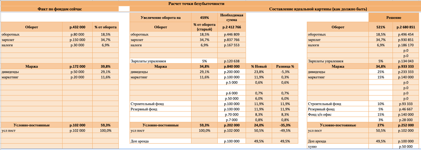 Рассчитываем реальную точку безубыточности