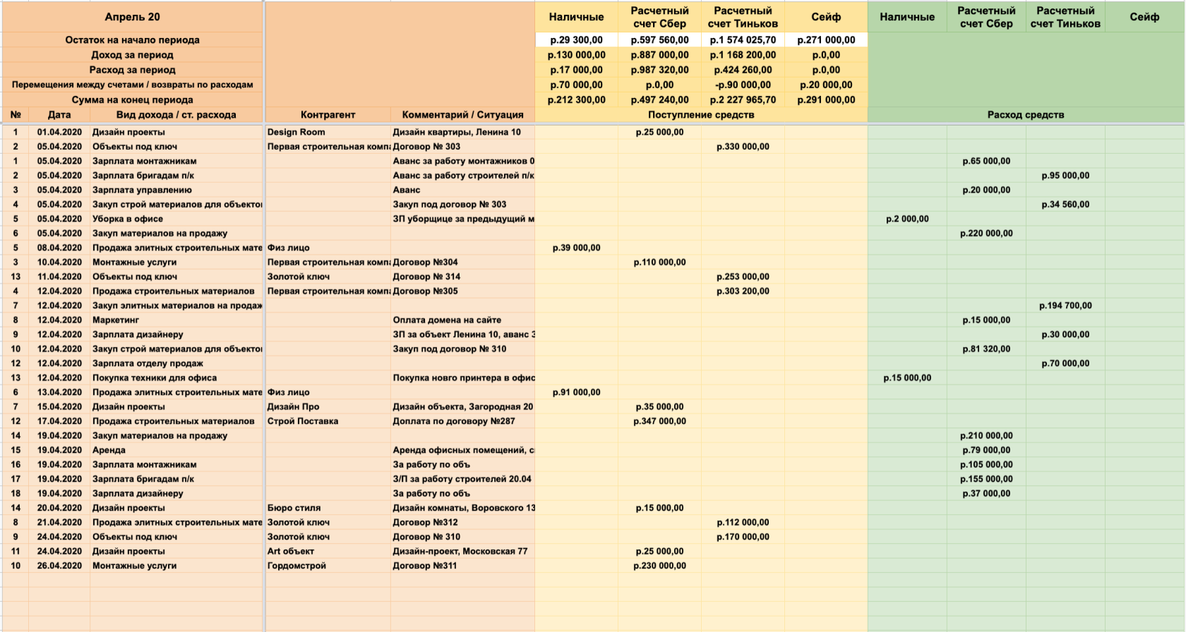 за последние 6-12 месяцев, строим аналитические таблицы, чтобы удобно свести доходы, расходы